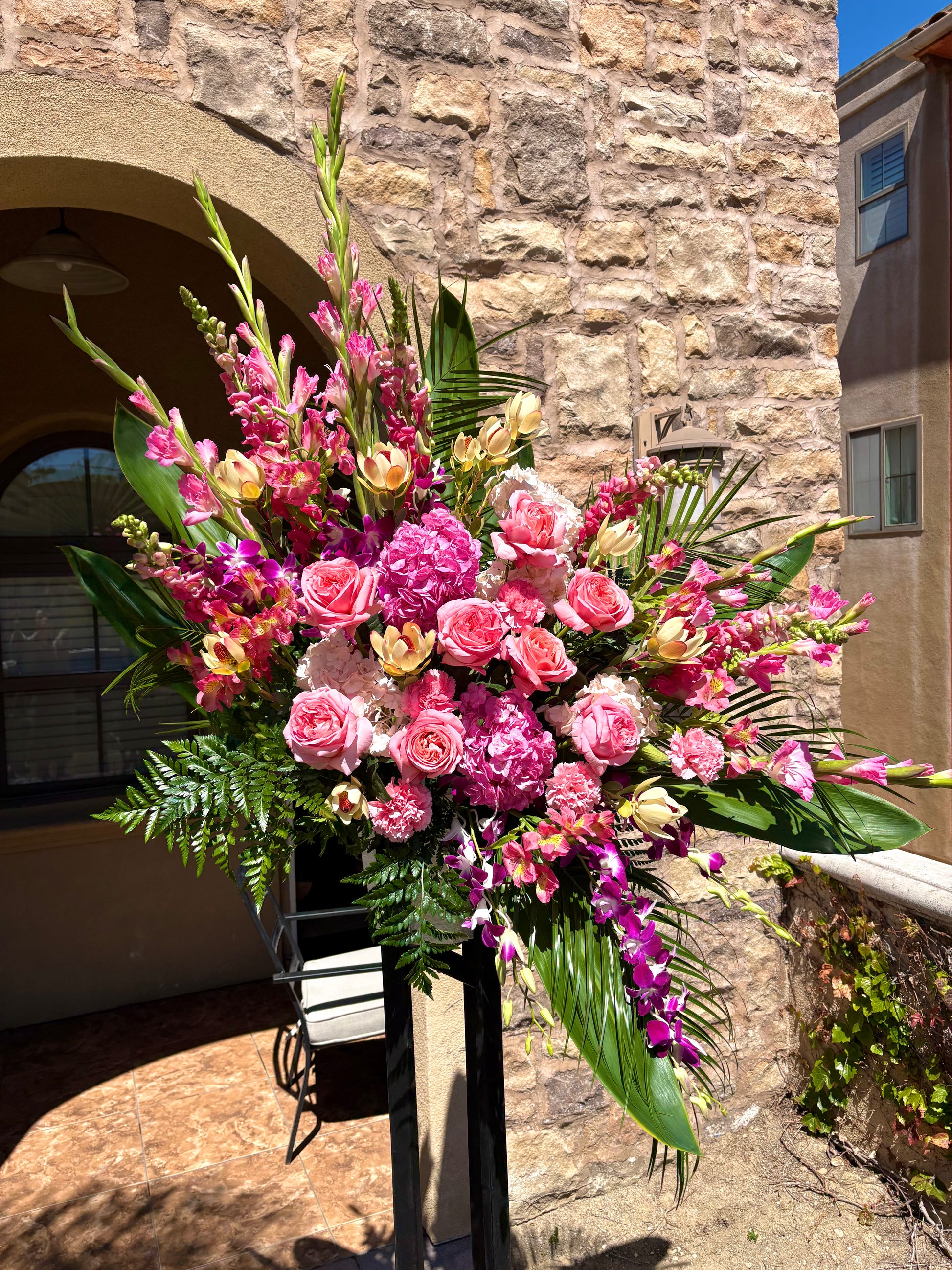 A dignified stand arrangement inspired by Japanese formality and calm. Ideal for corporate gifts, office receptions, and ceremonial events. Elegance and balance in every stem.