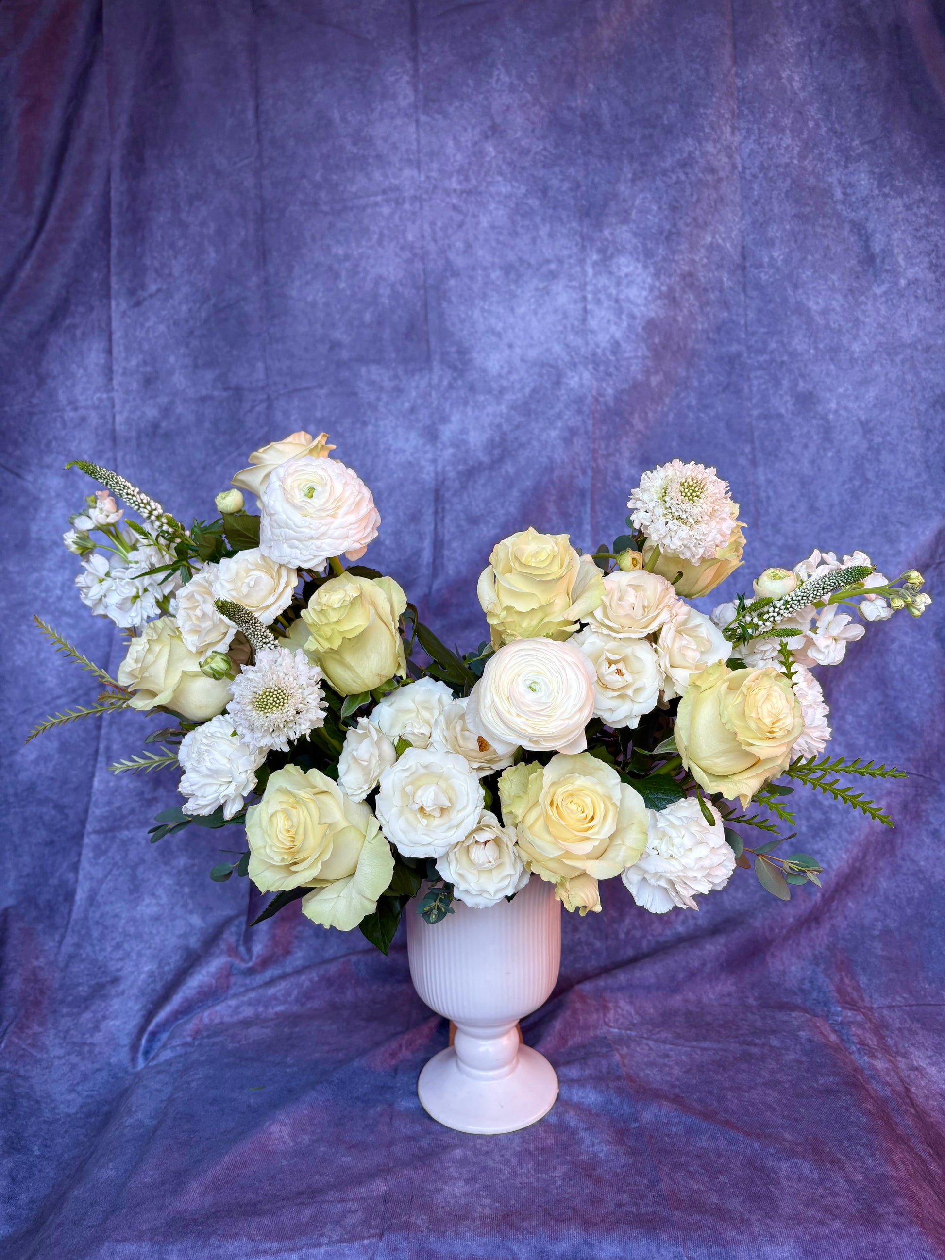 Arrangements will be made with seasonal flowers based on market availability at the time. Please note that the selection of flowers may vary.